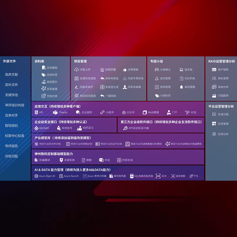 医疗器械产品上市前,,,,要熟悉严格与繁复评审标准,,,整理分析监管机构指导文件中的海量信息。。。。企业急需一个智能化解决方案,,,,提升知识管理效率,,,提高评审通过率,,以提升其市场竞争力。。。
