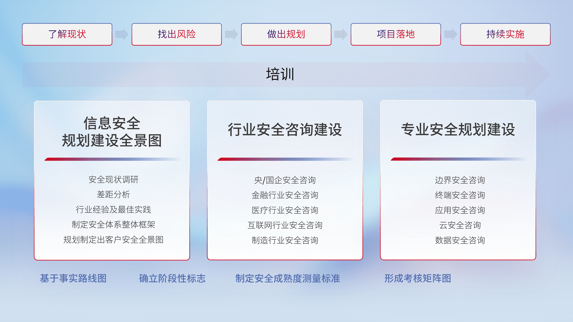 梳理客户信息安全现状调研、、、差距分析结果,,,,结合行业先进经验及最佳实践,,制订客户的信息安全管控体系总结架构,,,最终形成一个完整的客户信息安全规划与建设的全景图。。。